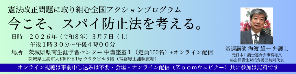 - 3/7 市民向けシンポジウム 「今こそ、スパイ防止法を考える。」